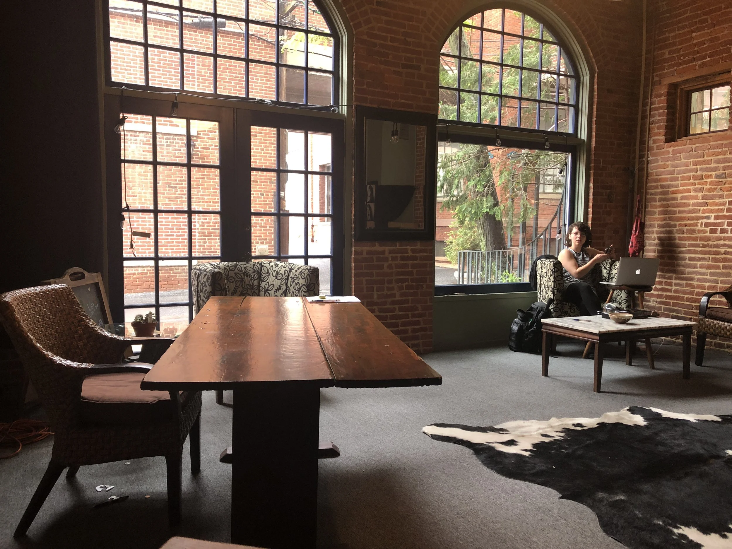 Imagine yourself in our space. Located in the heart of downtown Lancaster, PA, this beautiful, high ceilinged, comfy space is perfect for your gathering, whatever the occasion. Photo shoot, birthday party, yoga class, poker game, business meeting, art opening, movie night, or seance. We got you.
